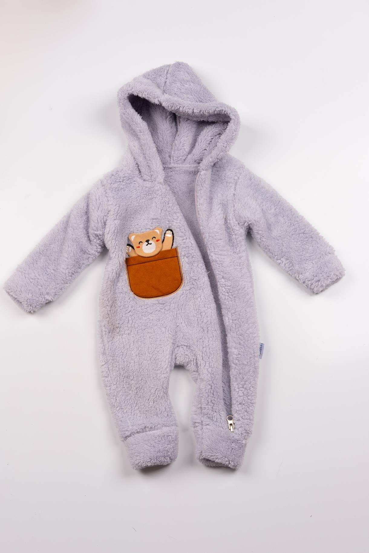Cepli Ayıcık Mobil Nakışlı Kapşonlu Welsoft Tulum Gri (W251150011)