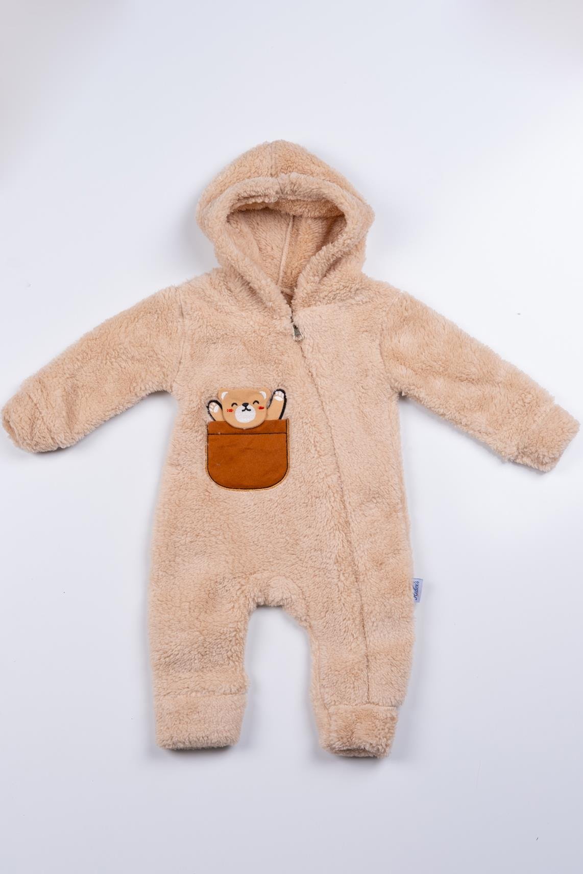 Cepli Ayıcık Mobil Nakışlı Kapşonlu Welsoft Tulum Kahverengi (W251150010)