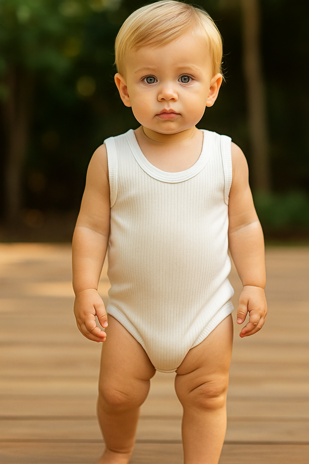 Yaz aylarının vazgeçilmezi olan askılı bebek body, %100 pamuklu ribana kumaşı ile bebek cildine nefes aldırır. Pratik çıtçıtlı tasarımıyla kolay kullanım sağlar.
