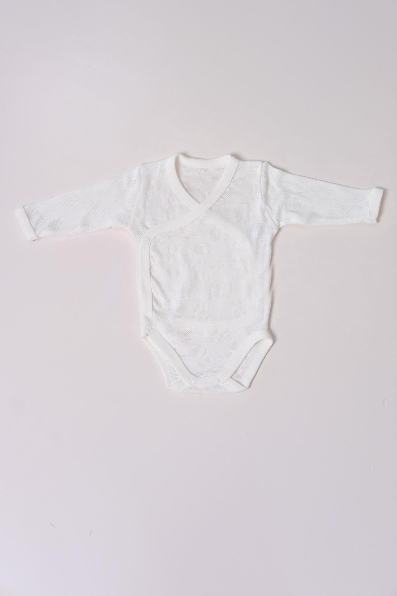 Uzun Kol Kundaklı Body Kare Desen Klimalı Kumaş Beyaz (SS25122BDY9002)